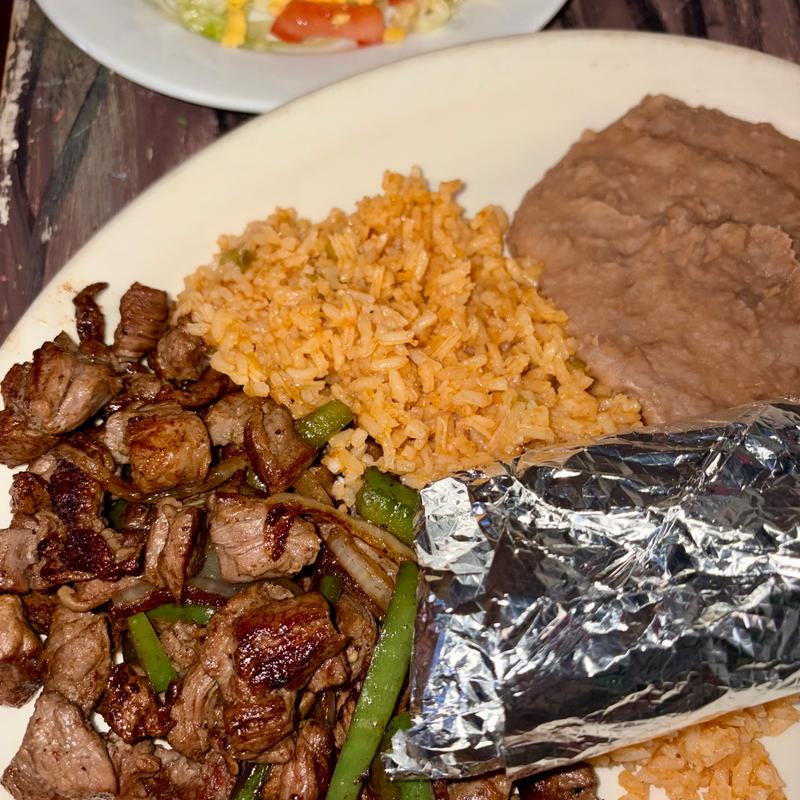 Once crispy taco (Beef or chicken), guacamole salad, & two enchiladas (Beef, chicken or cheese).